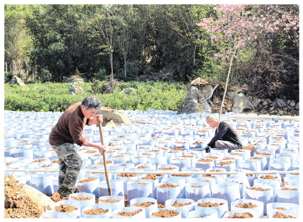 “今年我专门引进了紫花风铃木这个品种,种植了15亩地,15000株左右。”基地负责人黄家程告诉记者,“我们出去考察时,发现这个品种近年比较受欢迎,因为它美化庭院的效果比较好,很多人都喜欢。今年希望通过种植这个品种,能有个好收成。”黄家程今年瞄准了庭院美化市场,专程从广东引进了新品种进行尝试,他手握着土撬,信心满满。