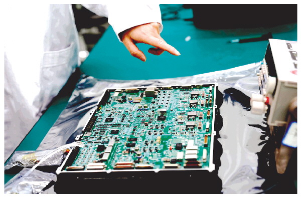 3月17日在上海巡天千河空间技术有限公司拍摄的卫星平板式综合电子产品。