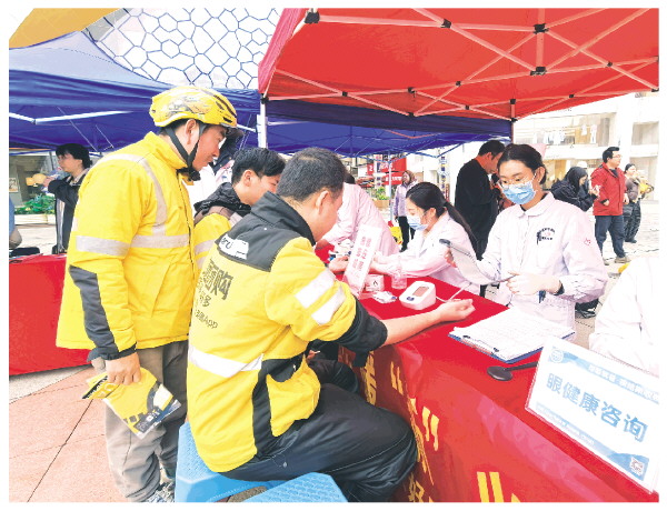 活动现场暖意涌动,七大主题服务专区精准对接骑手需求:能量补给站提供饮品零食为骑手“充电续航”;爱心理发、暖心义诊等服务贴心又实在;趣味互动区的套圈、背靠背运球等项目,让骑手在忙碌之余放松身心,现场欢笑声不断。