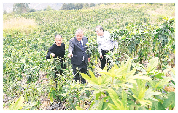 ▲图为农行客户经理在了解种植情况。 伍文悄/摄