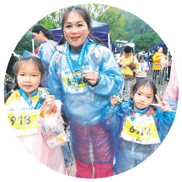 妈妈带着两个女儿顺利完成休闲组徒步。