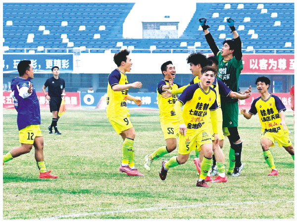 点球大战过程跌宕起伏,扣人心弦。桂林市七星区队先射。第一轮,双方球员均稳稳射中,比分1比1;第二轮,两队射门均被门将神勇扑出,比分不变;第三、第四轮,双方球员顶住压力,均命中目标,比分交替上升至3比3。点球大战来到第五轮时,出现了戏剧性的一幕。在桂林市七星区队球员射中,柳州市柳南区队球员未射中的情况下,比分来到4比3,但此时裁判判罚桂林市七星区队守门员在对手射门时提前移动,重新罚点球。重新上场后,柳州市柳南区队球员抓住机会,4比4扳平比分。5轮战罢双方仍战平,点球大战进入“突然死亡”阶段。桂林市七星区队球员顶住压力率先射中,柳州市柳南区队球员射门被桂林市七星区队门将陈曾俊喆扑出。最终,桂林市七星区队以总比分6比5险胜。