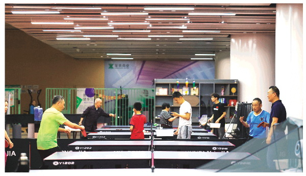 3月18日,市民在深圳地铁黄木岗站内的乒乓球俱乐部打球。