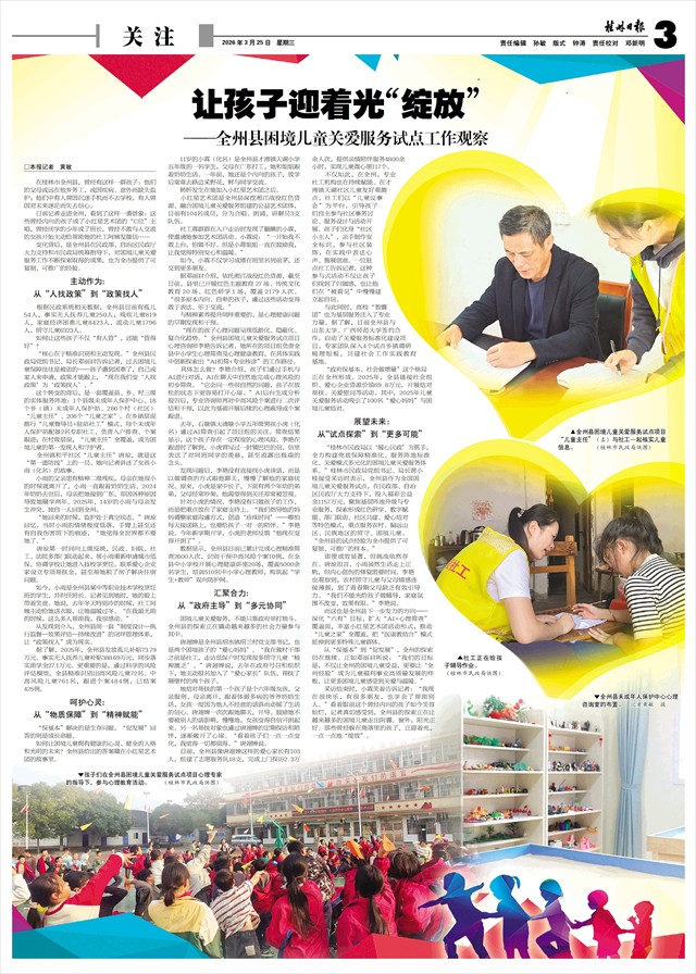 让孩子迎着光“绽放” ——全州县困境儿童关爱服务试点工作观察   □本报记者 黄敏