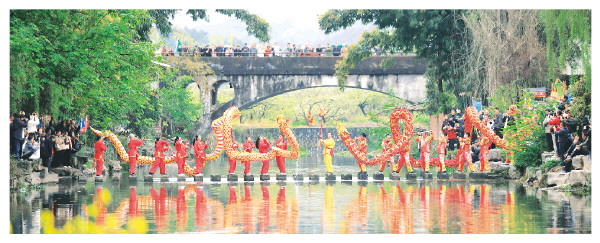 江口村是灌阳县传统村落的典范,也是桂剧发源地之一、清代“同胞三翰林”唐景崧的故乡,深厚的人文底蕴为活动增色不少。活动当天,现场人气高涨,各类特色环节轮番上演,全方位展现了新街镇的文化底蕴与乡村风貌。舞龙表演从唐景崧故居延伸至景崧广场,灵动的龙身引来群众阵阵欢呼,迅速点燃现场气氛。舞台上,桂剧舞蹈、经典与现代桂剧选段接连上演,演员们以精湛的演技和婉转的唱腔,生动展现桂剧的非遗魅力。江口古街,油茶、麻圆等地道美食飘香,村民现场展示制作技艺,让群众在烟火气中品味家乡味道。活动环节,书法摄影展墨香四溢,展现新街镇的山水人文之美;猜拳、投壶等民间娱乐项目吸引众多群众踊跃参与,让传统文化在互动体验中焕发新生。