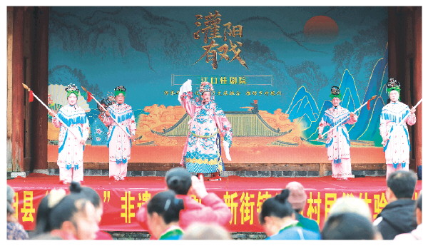 本报讯(记者李忠波 通讯员陆仕臣 方梦南/文 记者李忠波/摄)春和景明,文韵飘香。3月25日,灌阳县新街镇江口村举办民俗文化传承活动。活动以“弘扬传统文化 推动乡村文化振兴”为主题,融合农具展示、桂剧表演、油茶品鉴等本土特色,扎实推进文旅兴镇战略,为乡村振兴注入新的活力。