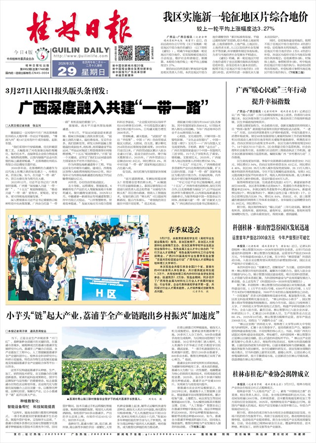 3月27日人民日报头版头条刊发: 广西深度融入共建“一带一路”   □人民日报记者刘泉 张云河