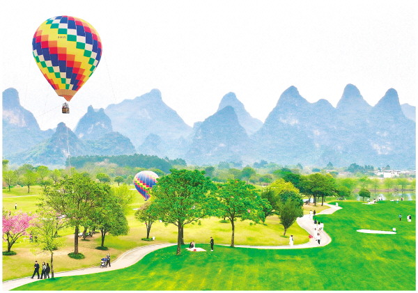◤3月29日,桂海晴岚景区内桃红柳绿、绿草茵茵,一派春意盎然的景象,游人在如画的美景中畅游。 记者李凯 摄