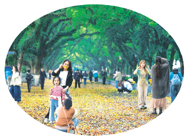 ▲3月29日下午,一场春雨过后,滨江路两侧的树木纷纷褪去老叶、萌发新芽。春和景明间,新绿满枝、落叶铺径,如诗如画,吸引市民游客驻足留影。 记者何平江 摄