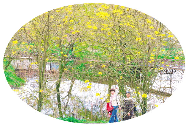 ▼近日,临桂区会仙镇岭上村的黄花风铃木盛情绽放,满树金黄的花朵,就像一个个风铃,为游人送来春日的祝福。近年来,会仙镇岭上村大力发展乡村休闲旅游,村民在村里种植黄花风铃木、紫藤、桃树等观赏树木,每到花季都会吸引众多游客前来“打卡”,展现出乡村振兴的蓬勃生机(详见三版)。 记者李凯 摄
