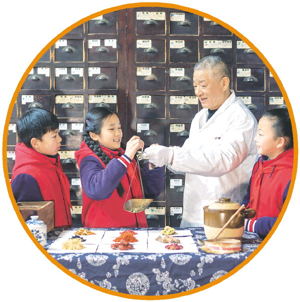 ▲2026年3月17日,在江苏省兴化市昭阳街道上池斋药店,兴化市景范学校学生在中药师的指导下体验抓中草药。