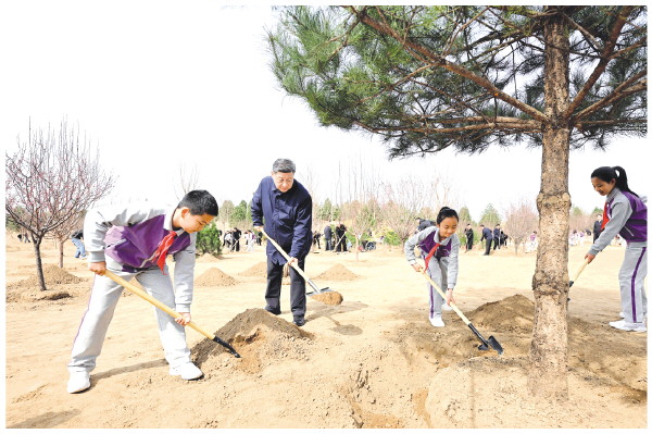 在京中共中央政治局委员、中央书记处书记、国务委员等参加植树活动。
