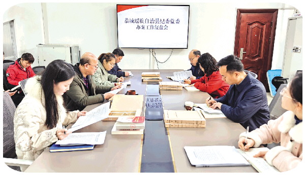 恭城瑶族自治县纪委监委立足于深化以案促改、提升办案质效,专题召开案件复盘工作会,对典型案件深入复盘剖析、查摆短板不足、压实整改责任,推动办案、整改、治理贯通融合,持续提升纪检监察工作规范化、法治化、正规化水平,以精准高效监督执纪为清廉恭城建设提供坚强保障。图为恭城瑶族自治县纪委监委办案工作复盘会现场。