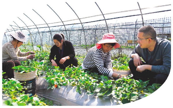 兴安县纪委监委深挖乡村振兴领域风腐交织问题,坚决清除妨碍惠民政策落实的“绊脚石”。图为近日,该县纪检监察干部到严关镇草莓种植基地了解相关情况。
