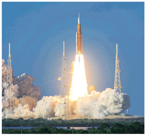 ▲美国国家航空航天局(NASA)的太空发射系统(SLS)火箭从佛罗里达州肯尼迪航天中心发射升空。 (图源:澎湃新闻)