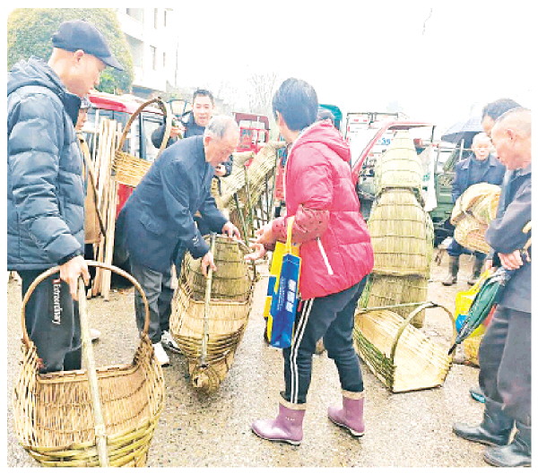 ▲村民在圩市上挑选农具。 专刊记者邓琳 摄