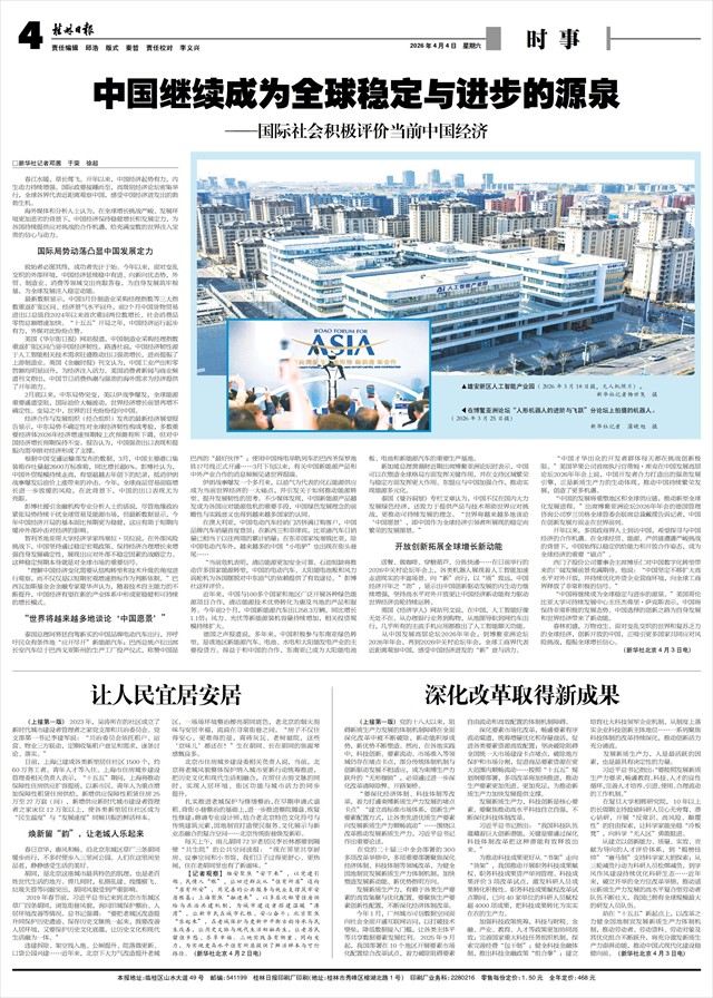 中国继续成为全球稳定与进步的源泉 ——国际社会积极评价当前中国经济   □新华社记者邓茜 于荣 徐超