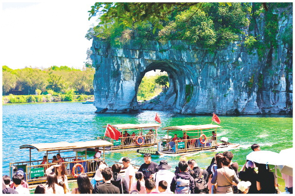来自各地的游客利用清明假期,徜徉在桂林的青山绿水间,与家人、朋友感受美好的春日时光。