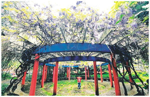 ▲临桂奥林匹克花园的紫藤花架车棚,是市区最浪漫的停车场之一。