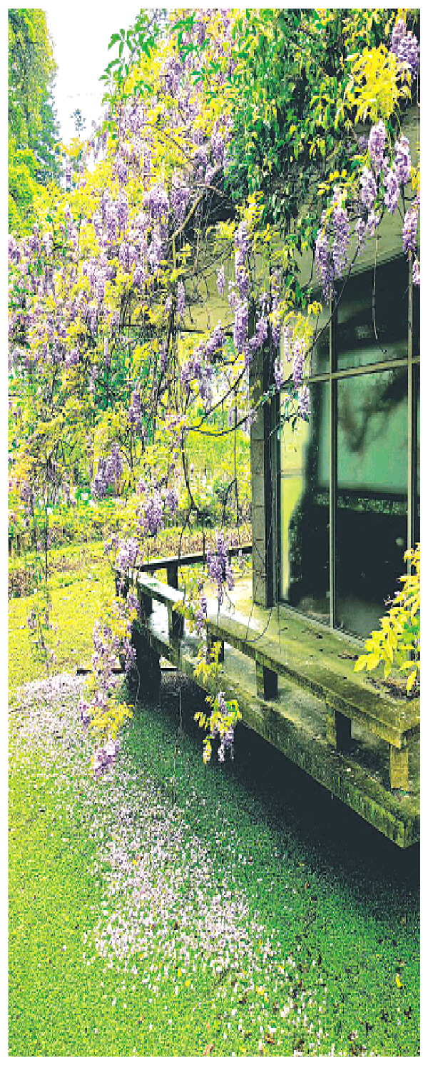 隐龙居的紫藤花架花开正盛。