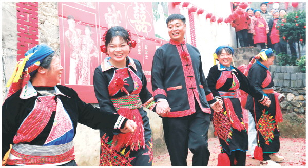 如今,“两头扯”早已融入当地寻常百姓的日常生活。上塘村委红白理事会会长奉远亮对此感触颇深。他说,过去农忙时节大家互相帮忙插田、收割;逢年过节走亲访友,也总是两边的亲戚一同来往,对双方家庭一视同仁。近年来,随着年轻人外出求学务工,“两头扯”的形式更加灵活,不少人选择在外定居,但零彩礼、共同赡养父母、子女分姓等核心传统始终未变,成为维系家庭和睦、凝聚民族情感的精神纽带。