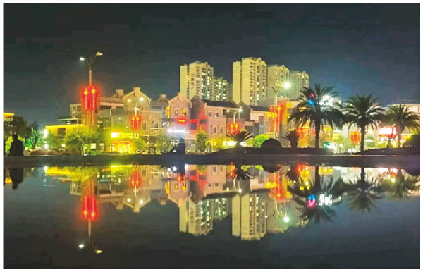 华灯初上,城市楼宇被璀璨灯火点亮,粼粼水面如镜,将满城夜色完整复刻,建筑与光影在水中交相辉映,勾勒出如梦似幻的城市夜景,展现出宜居宜游的城市魅力。