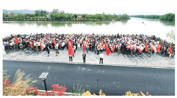 在大坪渡口,同学们聆听湘江战役历史故事,集体朗诵红色诗篇,徒步“红军路”,在实地情境中感悟红军将士不畏艰险、百折不挠的革命精神。
