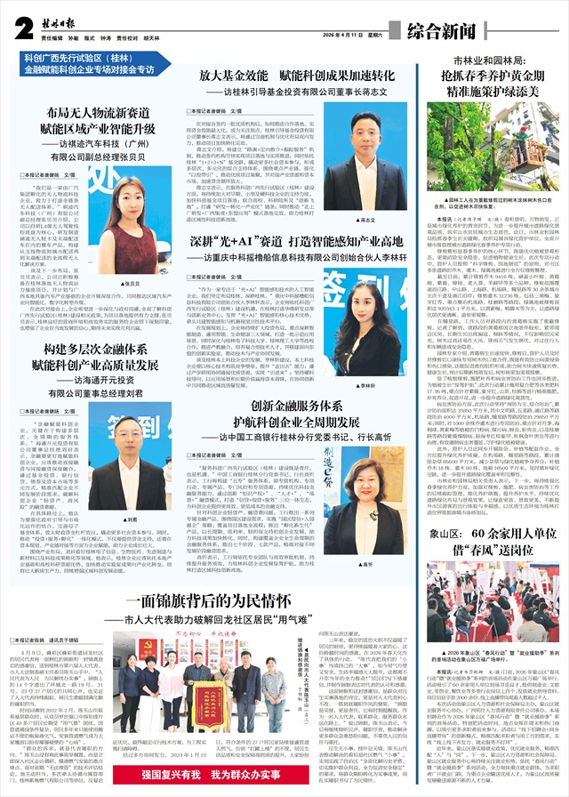 围绕产业布局,刘君看好桂林电子信息、生物医药、先进制造与新材料以及科技成果转化等领域。他表示,桂林企业应该依托本地产业基础和高校科研资源优势,加快推动实验室成果向产业化转变,培育壮大新质生产力,持续增强区域科创发展动能。