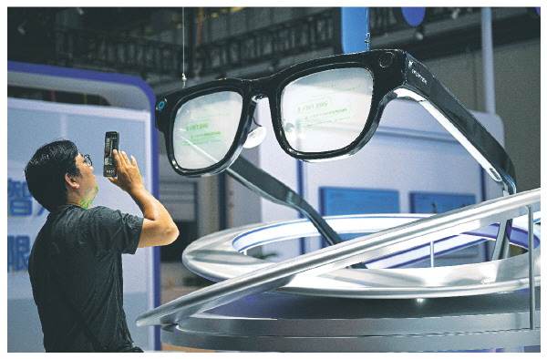 4月10日在第六届消博会主会场拍摄的AI眼镜模型。 新华社记者蒲晓旭 摄