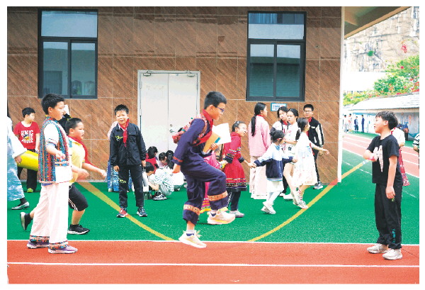 每年“三月三”前后,奎光学校都会举办民族文化运动会,项目包括板鞋竞速、踢毽子、背篓绣球等。今年“三月三”学校参加辖区举办的活动,让学生亲手绘制彩蛋,并了解彩蛋的寓意。“活动中还有碰蛋环节,孩子们在体验中感受到了传统民族文化魅力。”