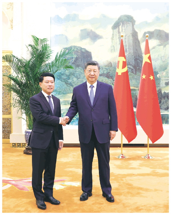 4月21日下午,中共中央总书记、国家主席习近平在北京人民大会堂会见作为老挝人民革命党中央总书记、国家主席通伦特使专程来访的老挝人革党中央政治局委员、常务副总理沙伦赛。