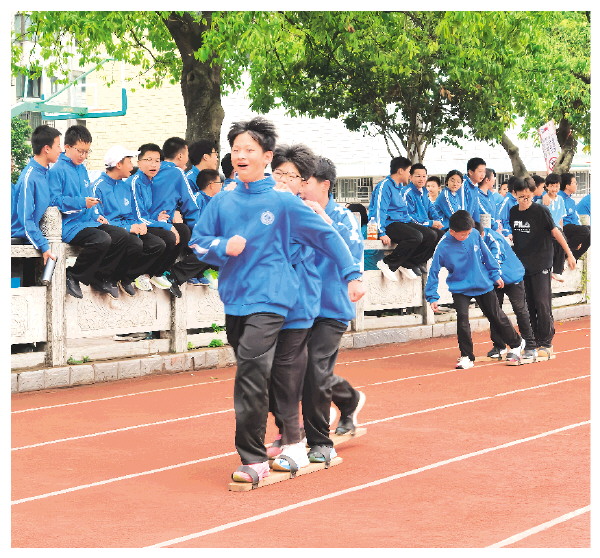 在跑道上,50米板鞋竞速项目中,参赛同学三人一组,脚踩板鞋、步调一致,向着终点奋力迈进,充分展现了团结协作的力量;足球场上,同学们背篓绣球项目热闹非凡,背篓手精准接球,投手们奋力投掷,每一次精准入篓都引来阵阵欢呼,赛场氛围热烈高涨;篮球场上,绕“8”字长绳项目中,同学们如灵动的飞燕,在长绳间穿梭跳跃,节奏明快、配合默契,展现出青春的活力与速度……这是记者近日走进桂林市逸仙中学春季运动会暨体育节现场看到的精彩一幕。本次活动恰逢广西“三月三”传统节日到来之际,学校将民族传统体育项目融入运动会赛场,打造了一场兼具竞技性与文化性的体育盛宴。