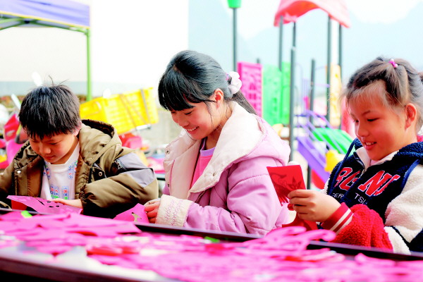 ▲1月10日,阳朔县党的二十大精神文艺宣讲暨“我们的中国梦——文化进万家”剪纸迎新春志愿服务活动在该县普益乡古乐村举行,邀请剪纸非遗传承人带领村民创作瑞兔贺岁主题作品,通过剪纸作品表达对新春的期盼和祝福。