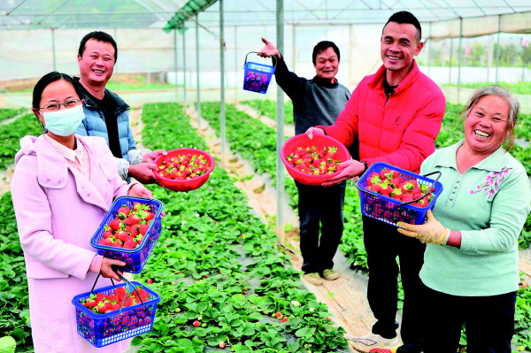 小龙门村的富硒草莓获得大丰收,村民笑开颜。记者苏展 摄