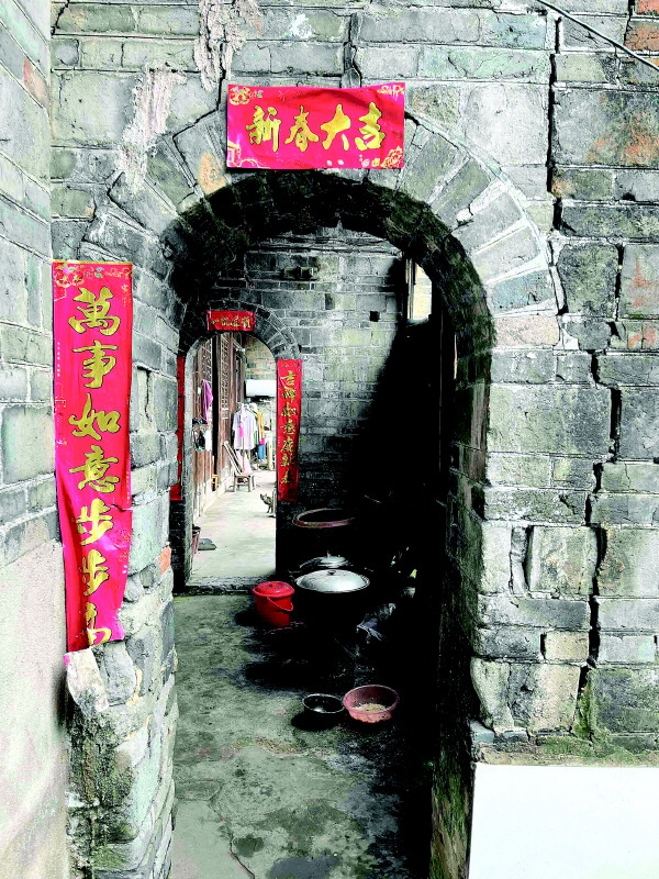 图③:喜庆的对联为古朴的老宅增添了许多生机