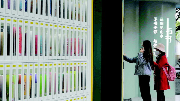 七星区在骖鸾路上新开设的24小时智慧阅读场所,市民前来借阅书籍。记者韦莎妮娜 摄
