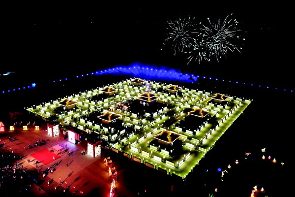 元宵佳节临近,位于甘肃省张掖市甘州区碱滩镇古城村的九曲黄河灯阵近日正式亮灯迎客。九曲黄河灯阵起源于黄河沿岸,因灯阵曲折绵延如黄河之龙曲而得名,在流传至张掖后被当地人民传承下来。新华社记者范培珅 摄