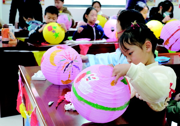 ▲“元宵节有什么习俗?”“挂灯笼、猜灯谜、放烟花、吃汤圆!”2月2日,叠彩区芦笛社区组织辖区50余名青少年儿童开展“巧手绘灯笼,欢乐庆元宵”活动,孩子们通过观看视频、知识问答了解元宵节的由来及传统习俗,并现场制作手绘灯笼,在动手实践中感受传统节日的文化内涵。 记者张婷婷 摄