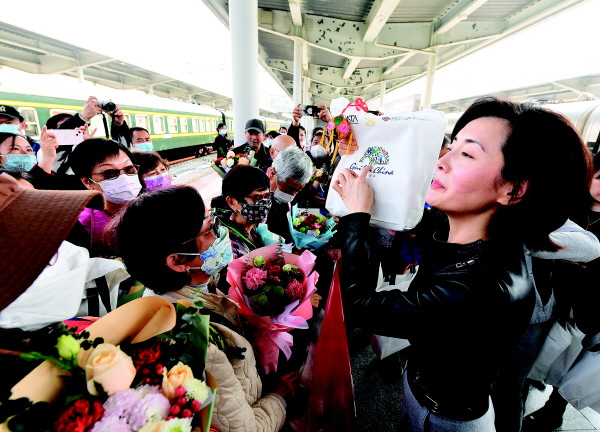 “桂林,我们来了!”抵达站台,游客们响亮地喊出了心声。在首发团的游客中,年龄普遍在六七十岁。旅行社方面透露,由于学生及在职人士基本返校返岗,因此首团人群以时间较为充裕的退休人士为主,约占出游人群的八成。