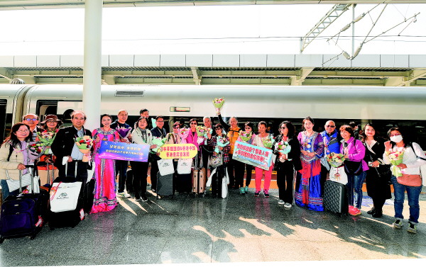 20日,20名香港游客乘坐G2904次动车抵达桂林。