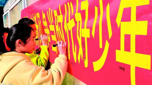 在第60个“学雷锋纪念日”和第3个“广西志愿者日”即将到来之际,近日,七星区穿山街道三联村的志愿者们走进桂林市蓝田学校,向同学们宣讲雷锋故事,传承雷锋精神,并共同在“学雷锋 树新风 争当时代好少年”横幅上签名,表达他们自觉传承雷锋精神,以实际行动弘扬时代新风的心愿和决心。记者李思静 摄