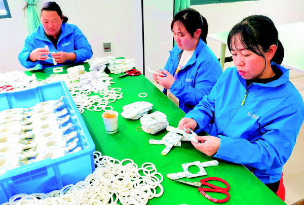 在资源县杉源医疗器械生产项目一期的耦合贴片生产线上,工人在开展包装作业。