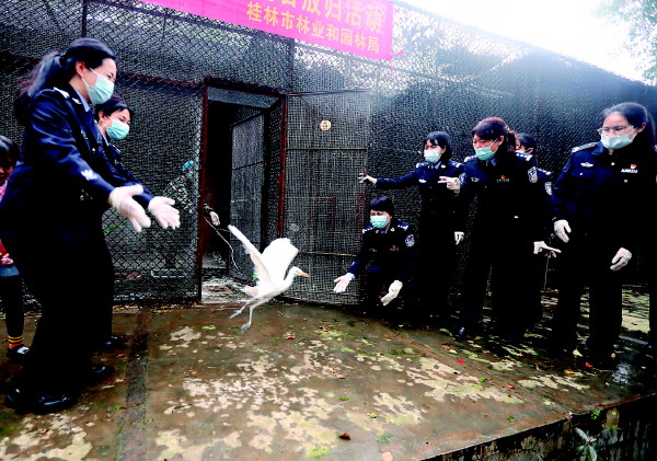 本报讯(记者陈静 文/摄)科学放生一批野生动物,为野生动物准备饲料,清扫笼舍……3月3日是第10个“世界野生动植物日”。当天上午,桂林市公安局生态环境保护分局与桂林市野生动物保护站联合开展“构建野生动物保护伙伴关系,助力桂林生态环境健康发展”主题活动,旨在进一步增强公众的野生动植物保护意识,保护生物多样性,努力建设人与自然和谐共生的美好家园。 在桂林国家森林公园内,工作人员在对周边环境和鸟类的状态进行仔细察看后,打开鸟笼。鸟儿们扑腾着翅膀重回大自然的怀抱:有的欢快地扇动翅膀飞进茂密的树林中;有的还有点发懵,面对“突然”的自由,一时忘了怎样飞行。本次救助放飞的33只鸟类,是经过桂林市野生动物保护站精心救治,体检评估恢复良好、达到科学放生条件的,包括池鹭、绿鹭2种4只广西重点保护野生动物,以及白鹭、秧鸡、珠颈斑鸠、牛背鹭和夜鹭等5种29只“三有保护动物”(即国家保护的有重要生态、科学、社会价值的陆生野生动物)。 市野生动物保护站的工作人员告诉记者,此次放生的鸟类此前因受伤或其他原因导致无法飞行,被群众和园林执法部门救助后移交给保护站,经过专业的治疗救护后,这些鸟类皆具备放飞回归大自然的条件。该工作人员还进一步解释,救助动物不单单是通过医疗、康复训练等方式让动物恢复健康,还要考虑其他因素,如能不能立刻放归大自然,应该在哪里放归大自然,它们属不属于当地物种、会不会破坏生态平衡,必须从维持生态平衡的全局出发开展动物救助工作,救助和保护动物需要更多人的共同努力。 当天,市公安局生态环境保护分局的民警还为保护站的野生动物带来了牛奶、肉类、坚果和蔬菜等饲喂食品并帮助饲养员清理笼舍,并开展了“生态讲堂之保护野生动物”现场讲座,在场民辅警和群众一道学习野生动植物保护知识,进一步普及野生动植物保护知识及生态文明理念,引导全社会强化保护野生动植物意识。“作为生态警察,我们不仅肩负着打击涉野生动物犯罪的行为,也希望通过我们的行动引导社会各界参与到保护生态、保护野生动物的工作中来,合力营造桂林和谐美好的生态环境。”市公安局生态环境保护分局政委黄冬梅表示。 市野生动物保护站还专门提醒大家,救助野生动物需要非常专业的救治行为,为了自身和动物的安全,不建议公众在发现受伤野生动物时盲目捕捉和救治。群众在野外捡到野生动物或其幼崽后,如观察没有明显外伤,应第一时间放回原处,就地放生;如动物有明显外伤的,可及时将其送至桂林市野生动物保护站(桂林市象山区万福路6号,桂林国家森林公园内)或者桂林市动物园,由专业人员进行救助。