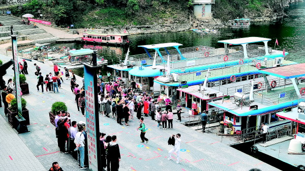 日月湾码头是两江四湖游览路线上船码头之一,目前每天都有大批旅客在此登船。