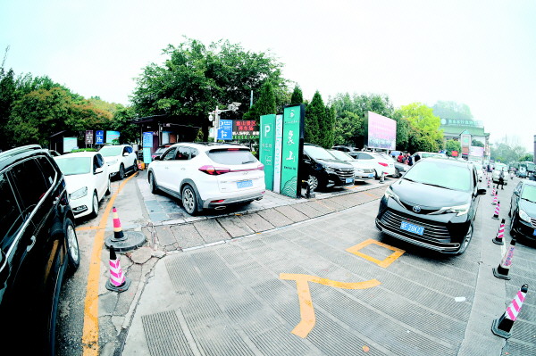 滨江路停靠成行的旅游大巴将一批批游客运送至此。