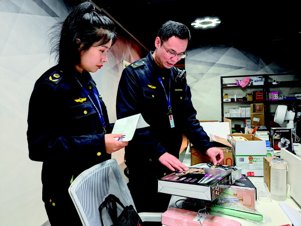 “你们直播销售的产品,一定要做好主播内容的审查,严把产品质量关,杜绝‘三无’产品,不得虚假宣传……”3月29日,在七星区创意产业园内一家科技企业的直播间里,来自桂林市市场监管局的执法人员正在对一直播企业进行检查,在企业的产品仓库中发现一款美发产品没有中文标识。这是一家以网络直播为主要营销模式的企业,主营小型家电产品。执法人员对发现的违法行为进行纠正,责令立即整改,并根据法律法规进行立案调查。