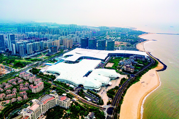 4月7日拍摄的第三届中国国际消费品博览会举办地——海南国际会展中心(无人机照片)。新华社记者 蒲晓旭 摄