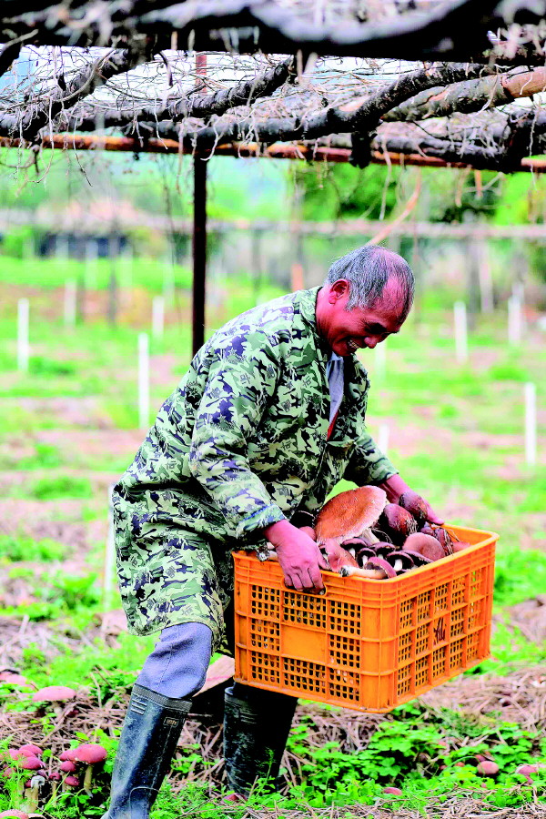 七星区华侨旅游经济区的农户正在采收赤松茸。记者苏展 摄