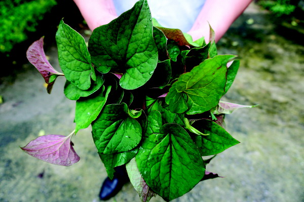 刚采摘的鲜嫩野菜。