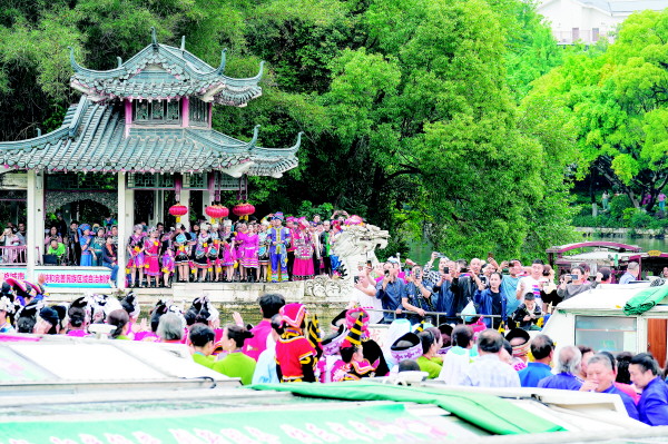 本报讯(记者何平江 文/摄)为充分利用好“三月三歌圩节”这一传统节日,弘扬优秀民族文化,弘扬社会主义核心价值观,宣传桂林世界级旅游城市建设,宣传桂林市全国民族团结进步示范市经验成果,进一步巩固和发展平等、团结、互助、和谐的社会主义民族关系,铸牢中华民族共同体意识,4月22日至23日,由中共桂林市委统战部、市民宗委、象山区政府共同主办的“铸牢中华民族共同体意识——潮聚三月三·和谐在八桂”系列活动在两江四湖景区等地精彩上演。